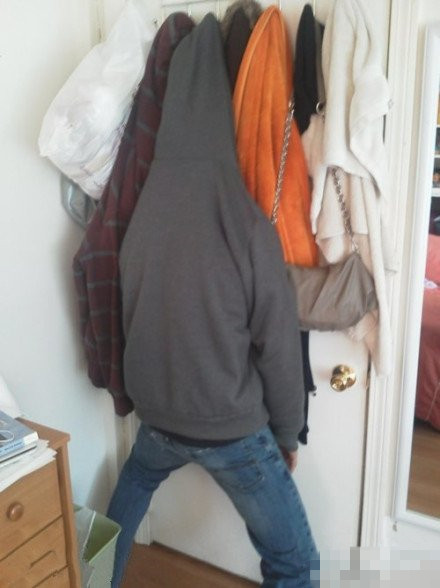 有天要出门,老公等我等得无聊,我一回头就看到这。。。