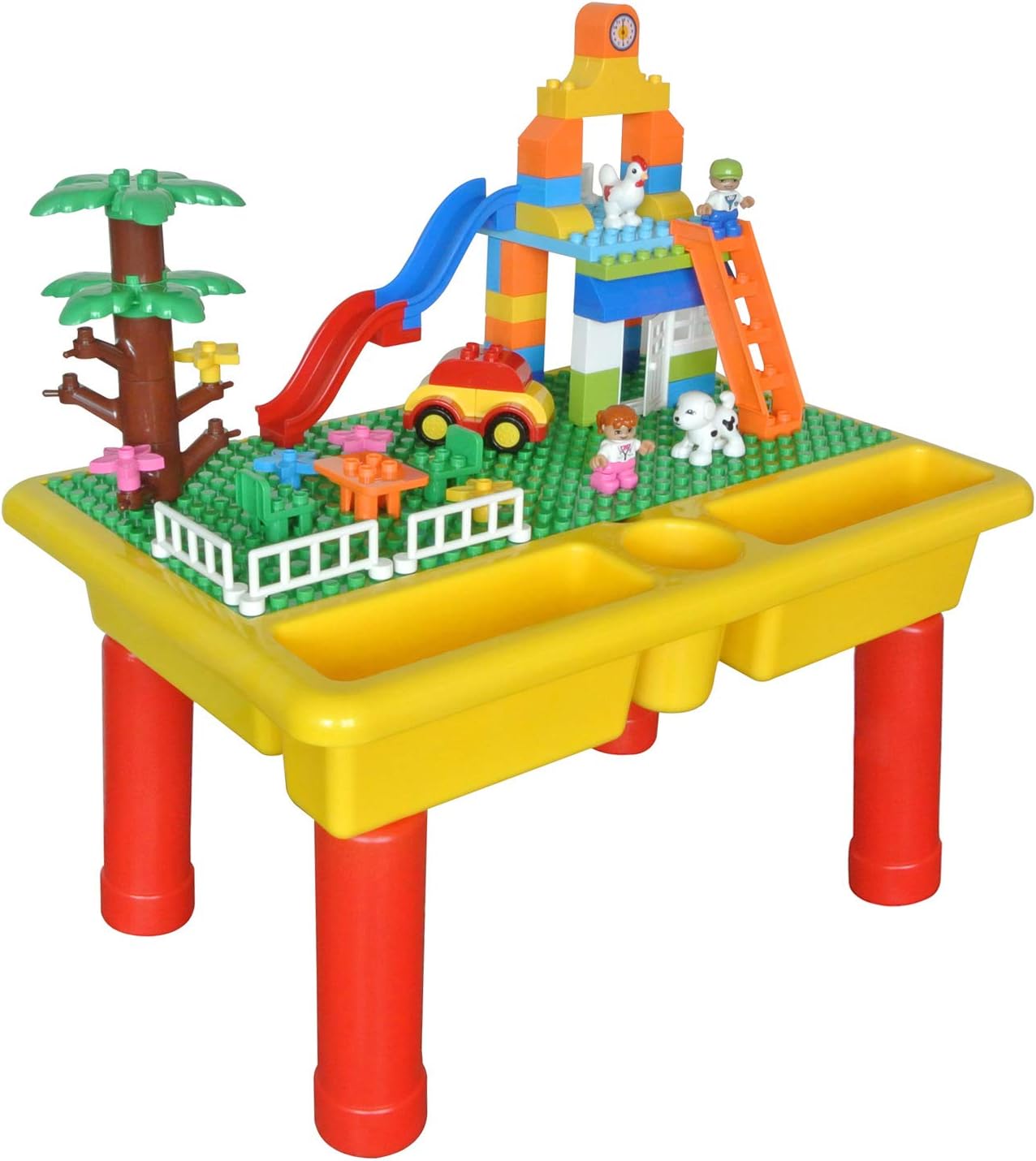 CMKidz 大块积木和游戏桌,带 65 块大块积木和底板,经典儿童教育玩具,可拆卸腿,便于存放,100% 与大品牌兼容,多种颜色。